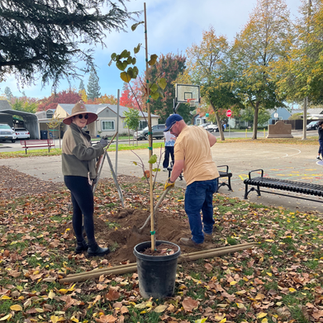 he act of planting trees not only beautifies the area but also fosters a sense of community pride and responsibility towards the environment. Volunteers chatted and laughed while digging holes, placing young trees into the ground, and spreading mulch around the bases to protect the roots and retain moisture.